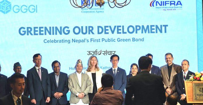 काठमाडौँ । नेपाल इन्फ्रास्ट्रक्चर बैक लिमिटेड (निफ्रा)ले नेपालको पहिलो ‘पब्लिक ग्रिन बण्ड’ अर्थात सार्वजनिक हरित ऋणपत्रबाट संकलित रकम नवीकरणीय ऊर्जामा लगानी हुनेछ । निफ्राले ग्रिन बण्ड जारी गर्न ग्लोबल ग्रीनग्रोथ इन्ष्टिच्युट (जिजिजिआई) र कोरिया इन्टरनेशनल कोअपरेशन एजेन्सी (कोइका)को सहयोग लिएकाे हाे ।